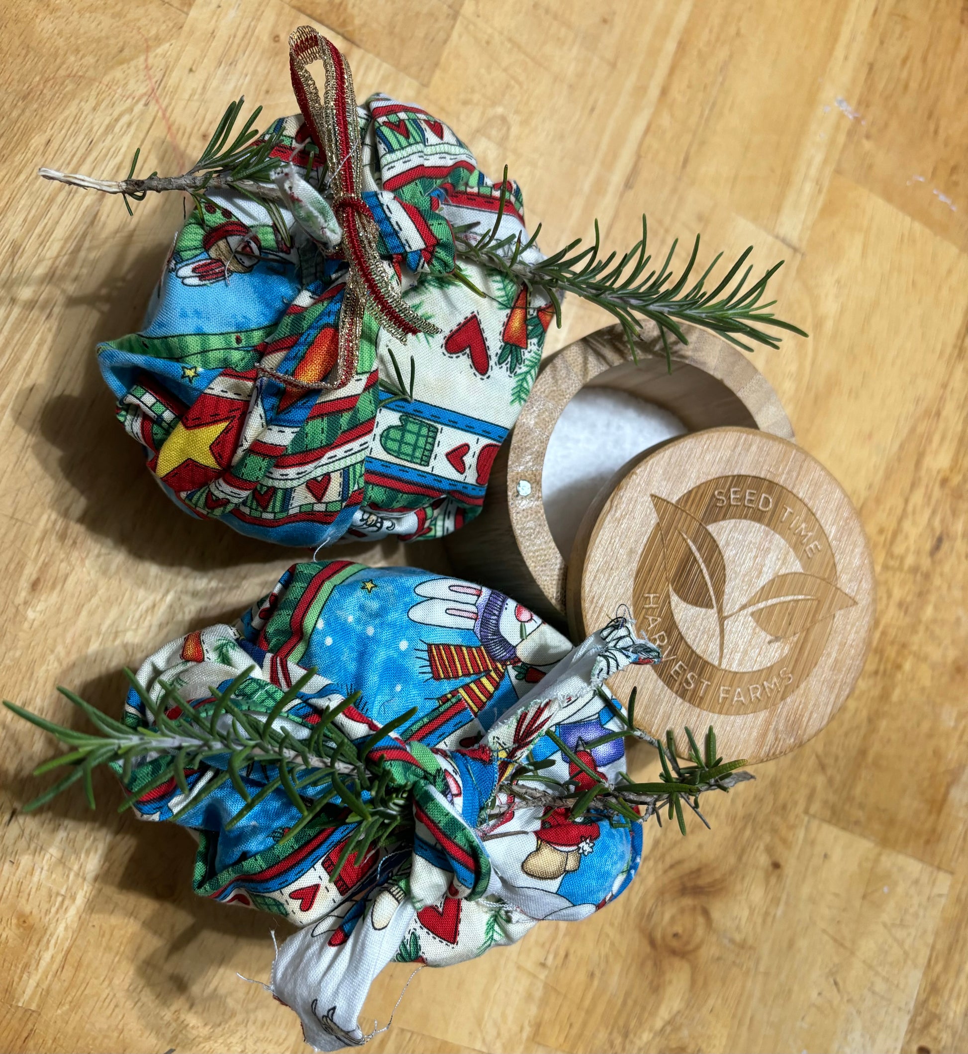 Salt exchanged between friends is a sign of covenant. These wonderful little boxes are wonderful gifts to yourself or a friend. Specially wrapped in Furoshiki styled cloth, it makes it all the more special.